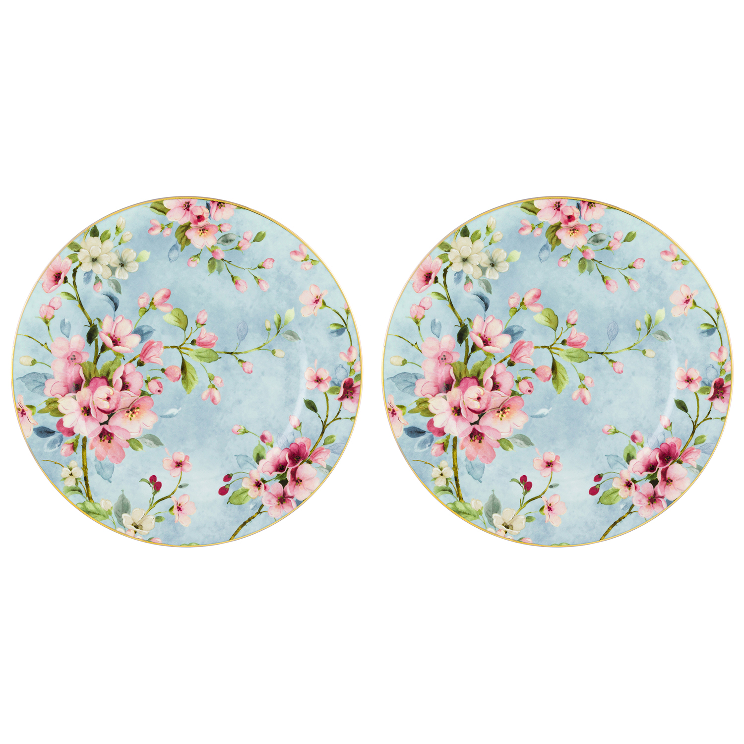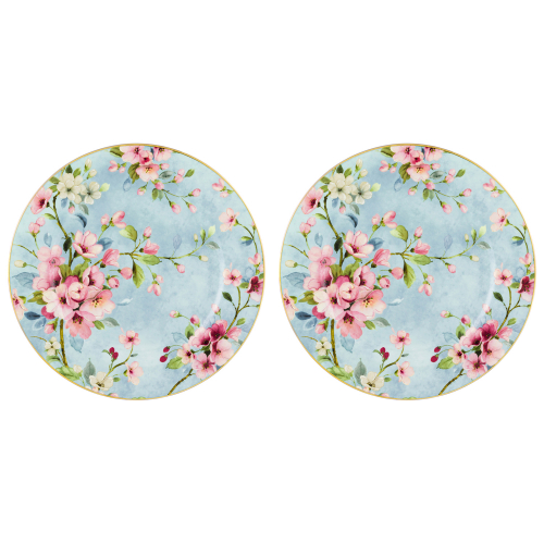 БЫЛО 1201руб! Набор тарелок десертных 2 пр. 19*19*2 см "Яблоневый цвет на голубом" фарфор NEW BONE CHINA