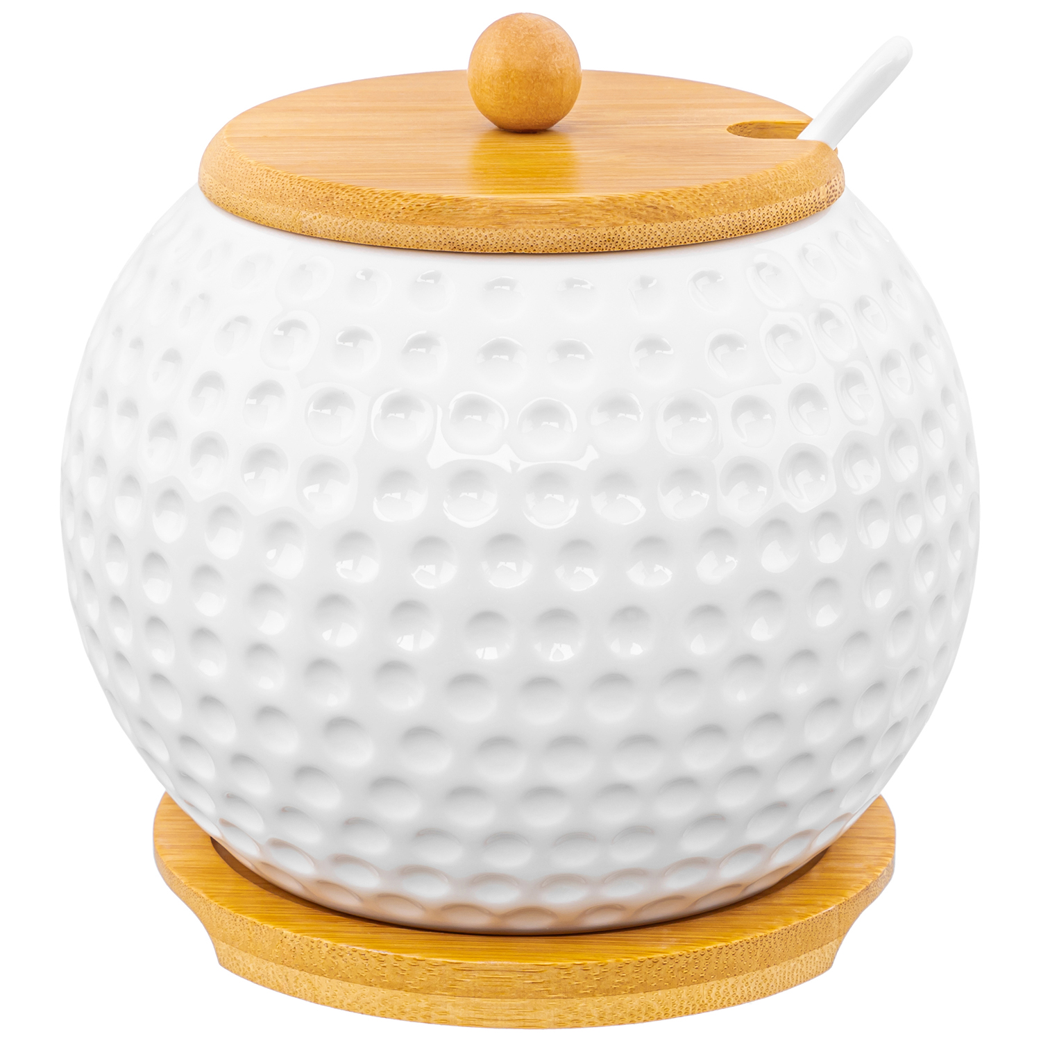 БЫЛО 1207 руб! Сахарница 1,2 л 15*15*15 см "Сфера" с ложкой и дер. крышкой на дер. подставке