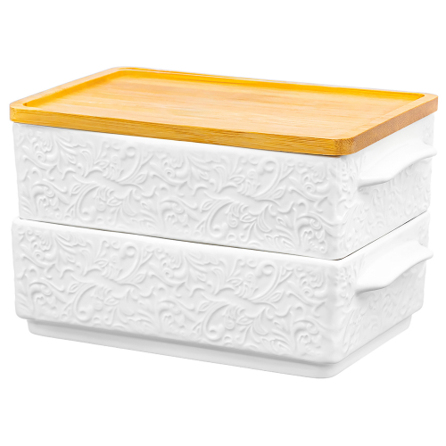 БЫЛО 1331 руб! Набор 2 блюд д/холодца 1,6 л 20,5*12*12 см "Лоза" + бамбуковая крышка