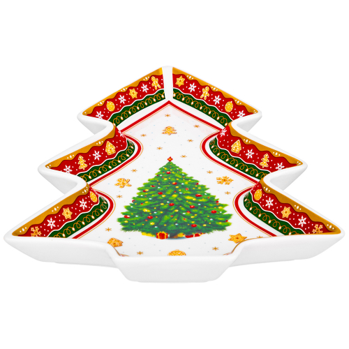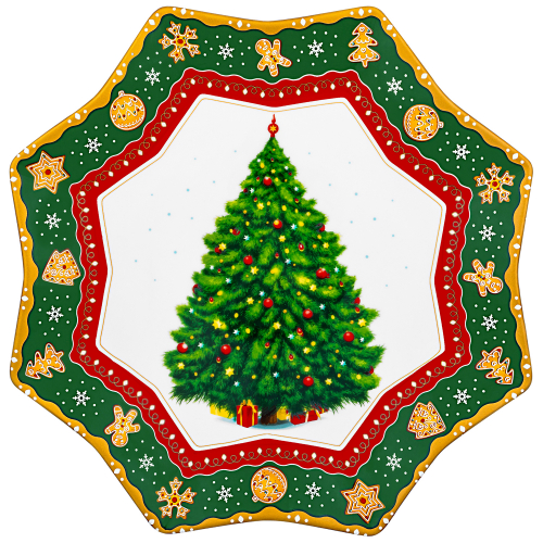 БЫЛО 1355руб! Блюдо 27*27*2 см "Новогодняя елка" зеленый узор, звезда NEW BONE CHINA