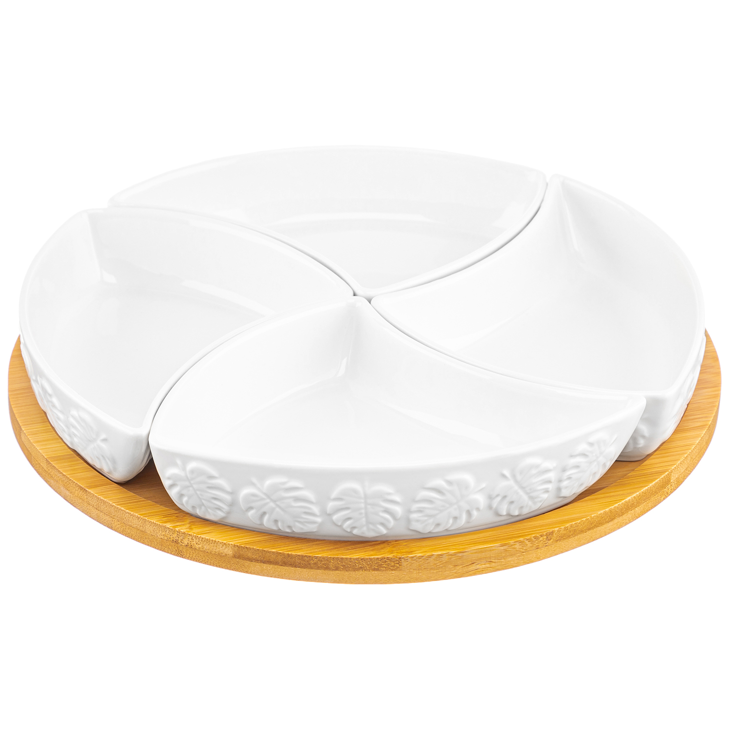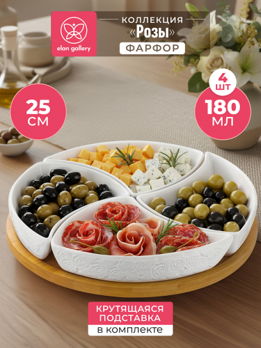 БЫЛО 1388руб!!! Менажница 25*25*6 см "Тропики" крутящ. 4 секции на дерев. подставке
