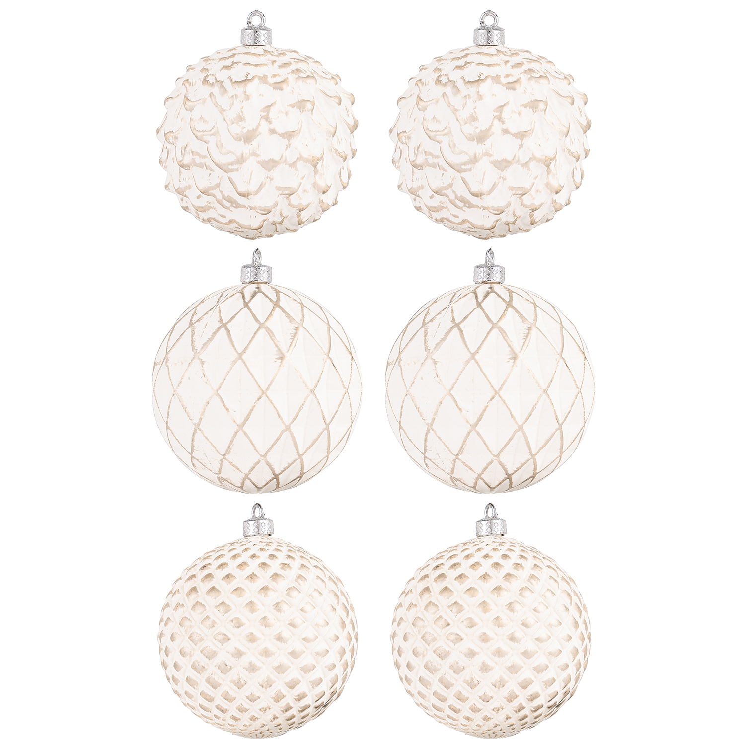 БЫЛО 1391 руб! Набор 6 новогодних шаров 9,5*9,5 см "Винтажные узоры" шампань с эффектом старины