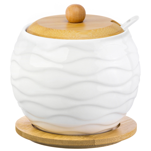БЫЛО 1404 руб! Набор - сахарница 550 мл + солонка 170 мл 27*11,5*12 см "Айсберг" + 2 ложки на дер. подст.