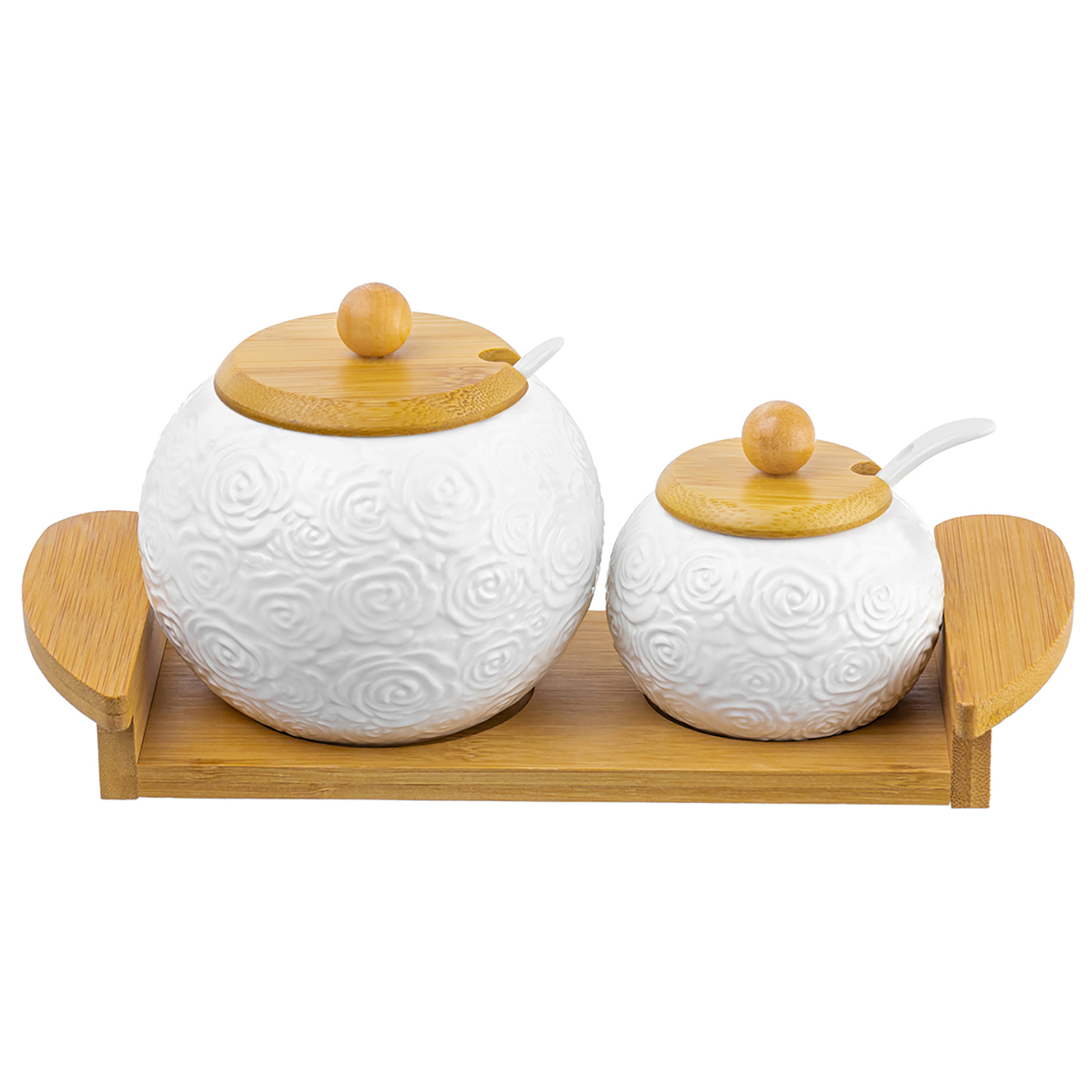 БЫЛО 1404 руб! Набор - сахарница 550 мл + солонка 170 мл 27*11,5*12 см "Розы" + 2 ложки на дер. подст.