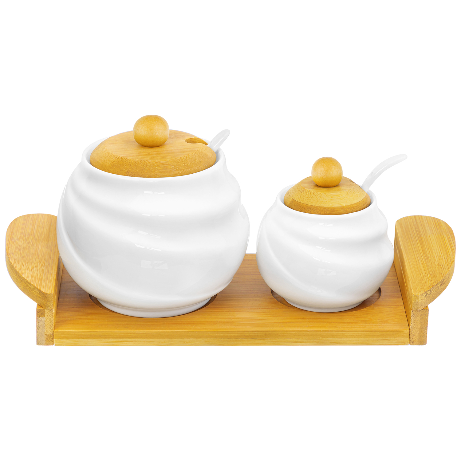 БЫЛО 1404 руб! Набор - сахарница 590 мл + солонка 210 мл 28*12,3*12 см "Айсберг волны" + 2 ложки на дер. подст.