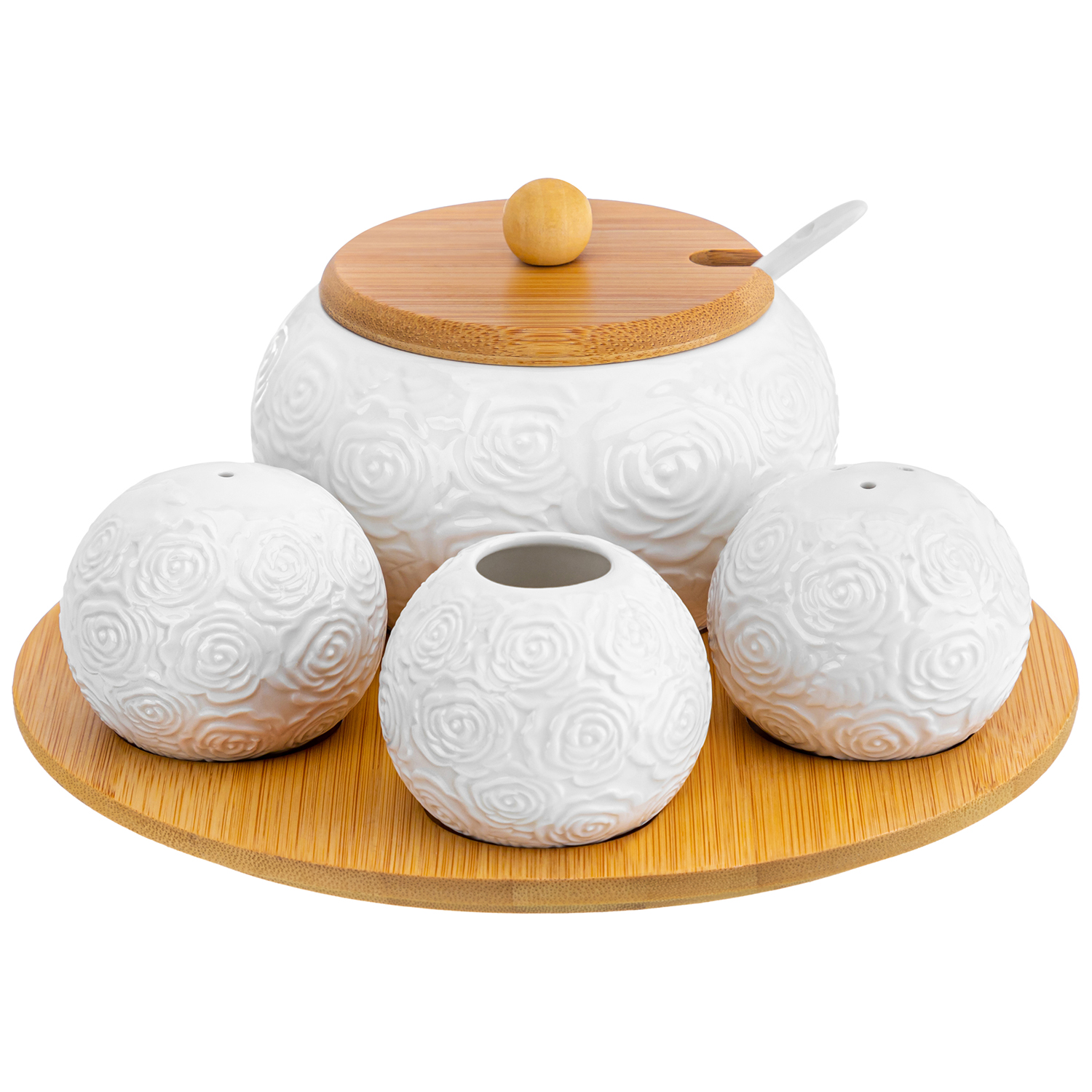 БЫЛО 1475 руб! Набор 4 пр. - Сахарница+Вазочка под зубоч. и набор для спец. 2 пр. на бам.под 20,5*20,5*10 см "Розы"
