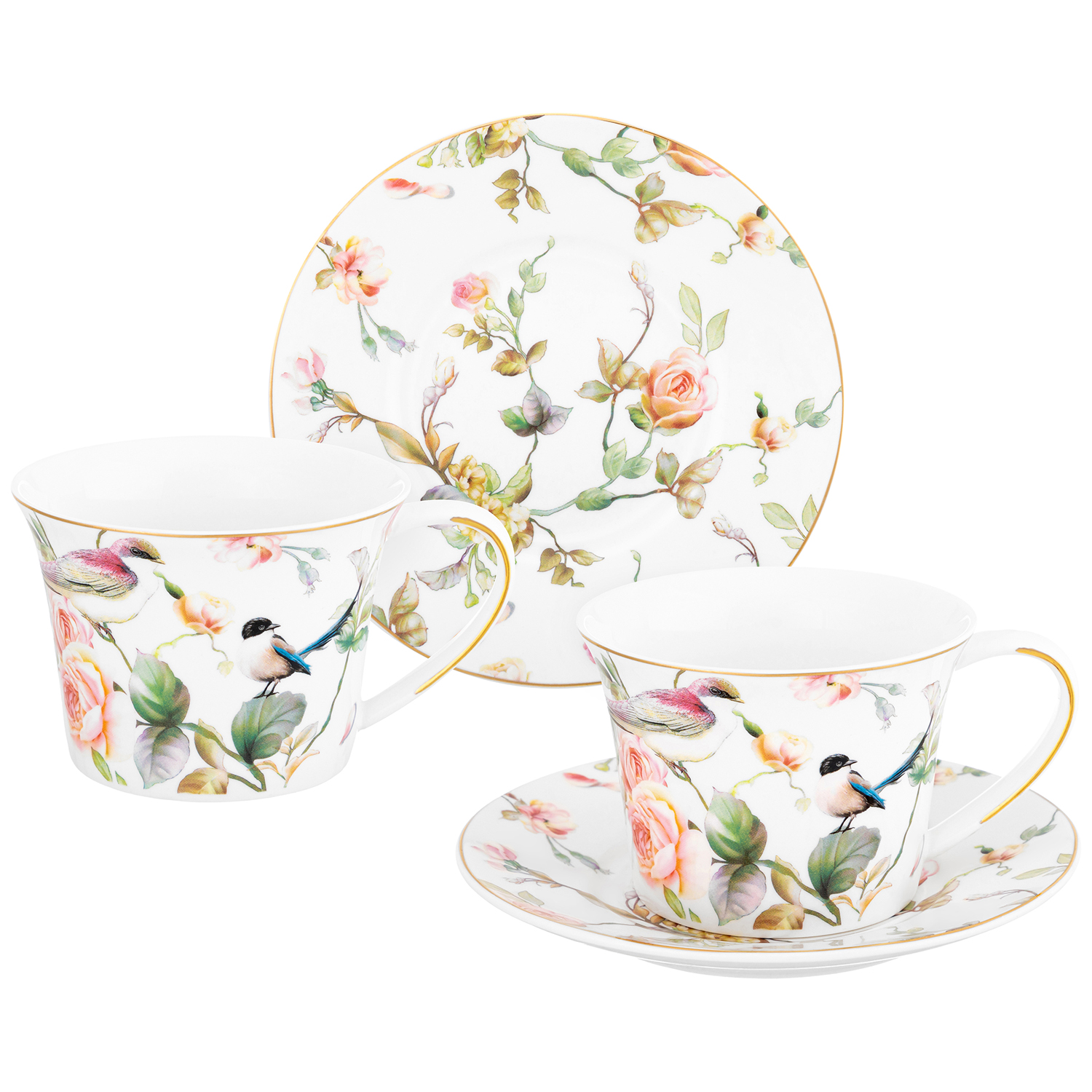 БЫЛО 1553 руб! Чайная пара 4 пр. 270 мл 12,5*9,5*7 см "Певчие птички" NEW BONE CHINA