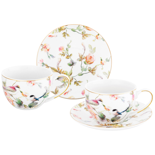 БЫЛО 1599 руб! Набор 4 кружек 300 мл 12*9*8 см "Певчие птички" на металлической подставке, NEW BONE CHINA