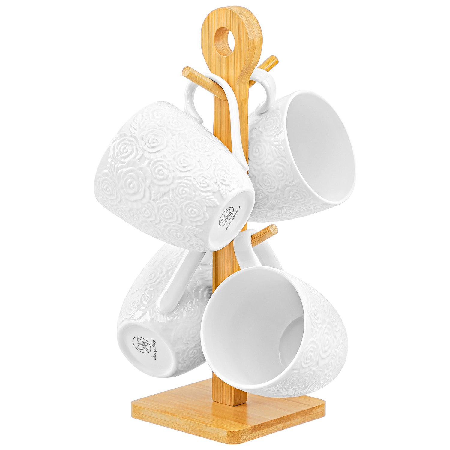 БЫЛО 1632 руб!!Набор 4 кружек 350 мл "Розы" на дерев. подставке