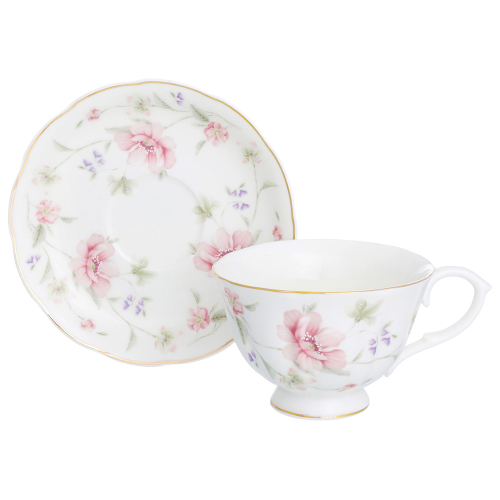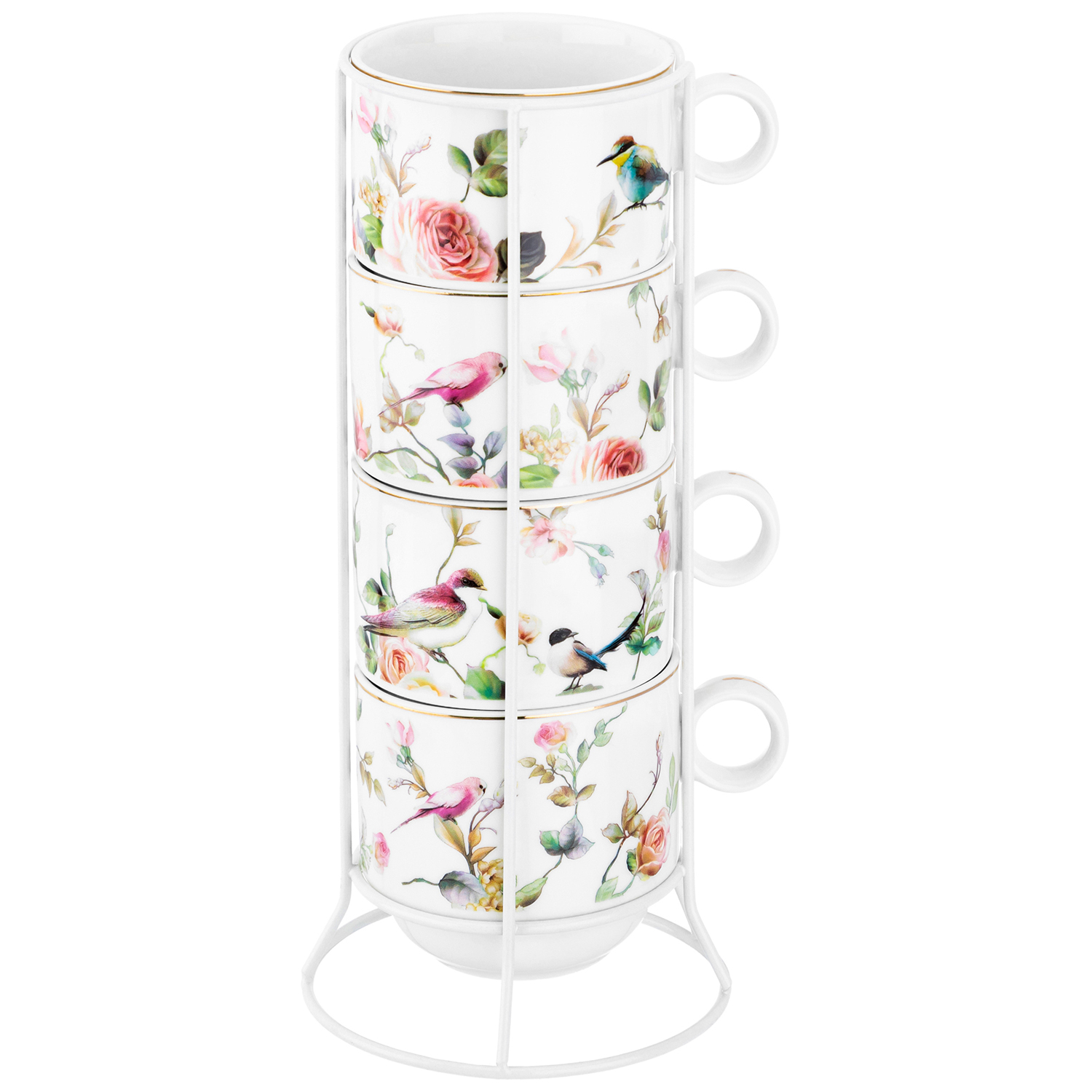 БЫЛО 1663 руб!! Набор кружек 4 пр. 300 мл 12*9*8 см "Певчие птички" на металлической подставке, NEW BONE CHINA