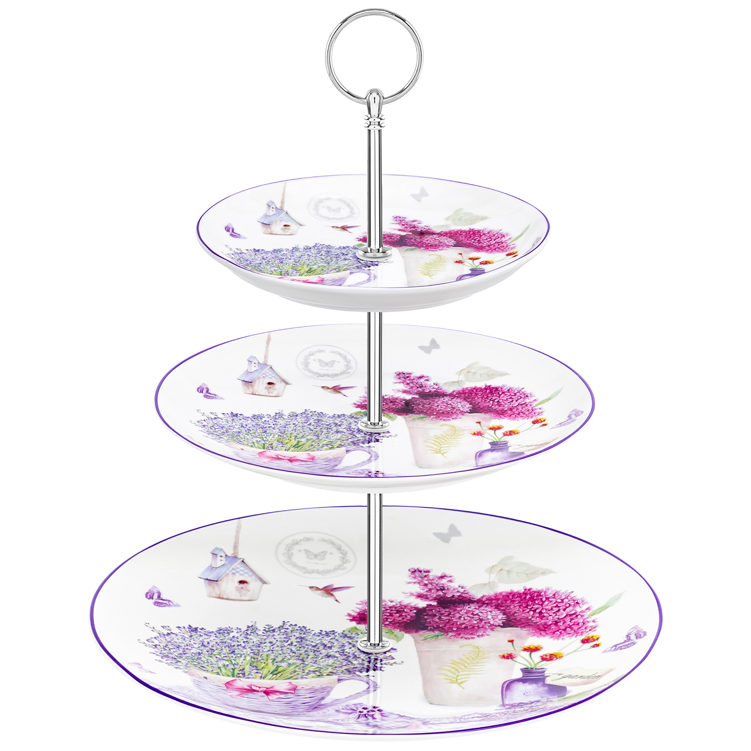 БЫЛО 1721 руб! Блюдо-этажерка 3-х ярусная "Лаванда" 27*27*34 см NEW BONE CHINA
