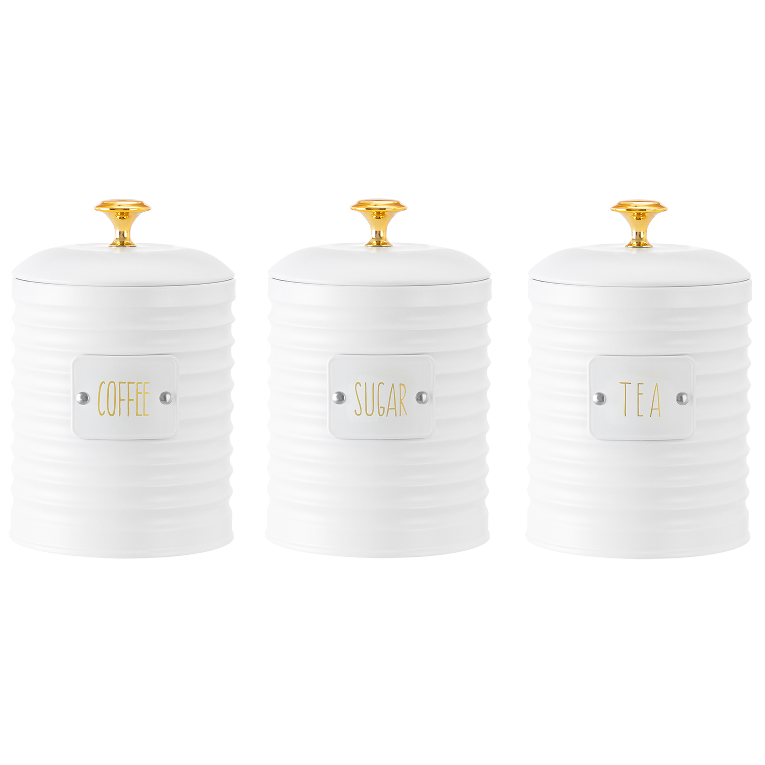 БЫЛО 1733 руб! Набор 3 банок д/сыпучих продуктов 1 л 10,5*10,5*16 см "Tea, coffee, sugar" с крышк.с сил.упл.,белы