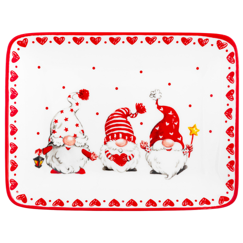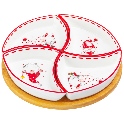 БЫЛО 1754 руб! Менажница 25*25*6 см "Весёлые гномики" крутящ. 4 секции на дерев. подставке