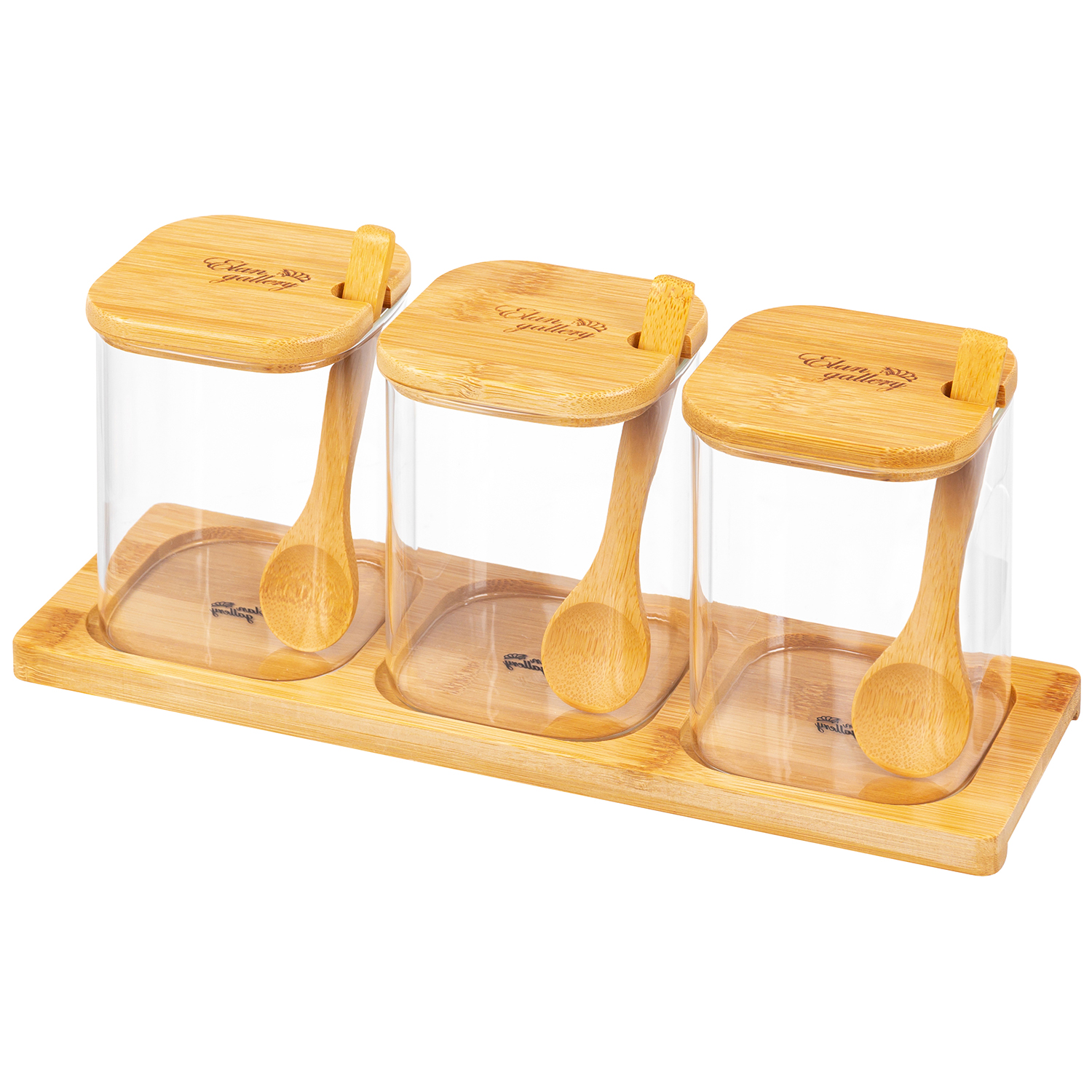 БЫЛО 1836 руб! Набор банок д/специй 3 пр. 450 мл 29*9,5*11,5 см "Crystal glass" + бамб.крышка+ложка+бамб.подставка