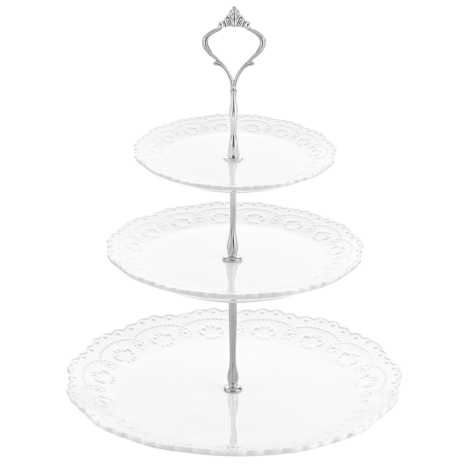 БЫЛО 1909 руб! Блюдо-этажерка 3-х ярусная 28*28*37 см "Белый узор" с серебристым креплением