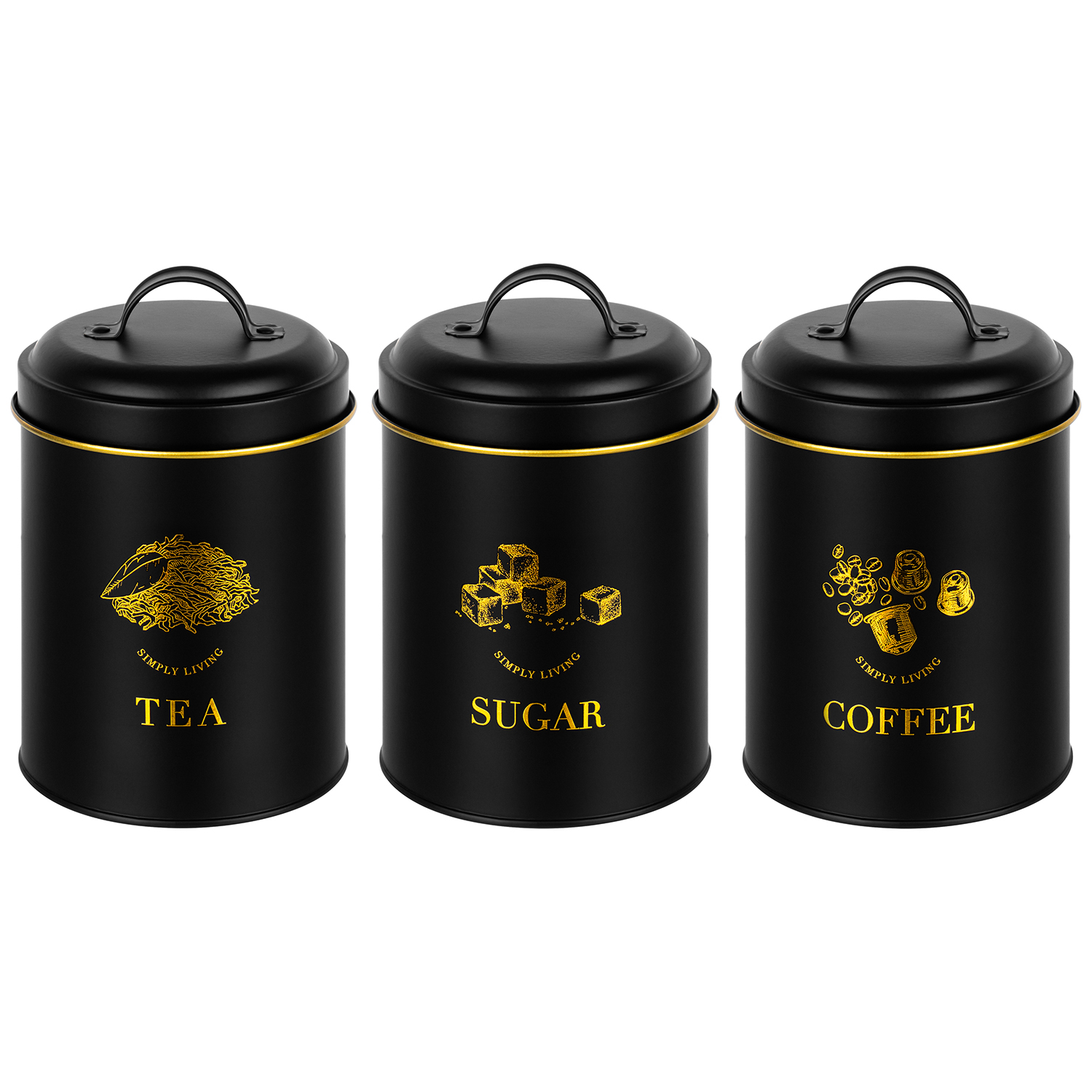 БЫЛО 1943 руб! Набор банок д/сыпучих продуктов 3 пр. 1,1 л 11,7*11,7*17 см "Tea, coffee, sugar" + крышки с ручк
