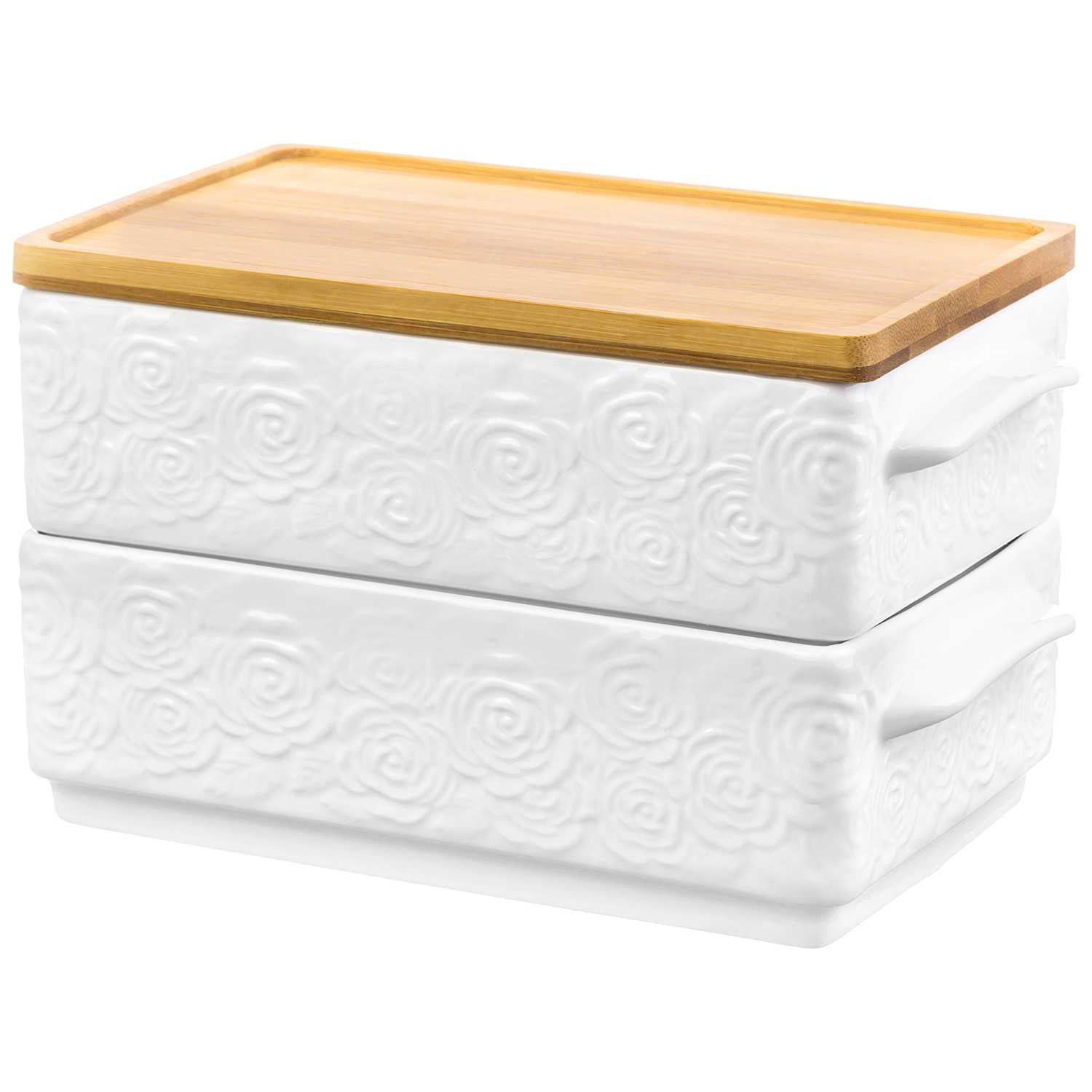 БЫЛО 1985 руб! Набор 2 блюд д/холодца 1,6 л 20,5*12*12см "Розы" с бамбуковой крышкой, фарфор