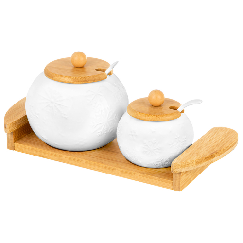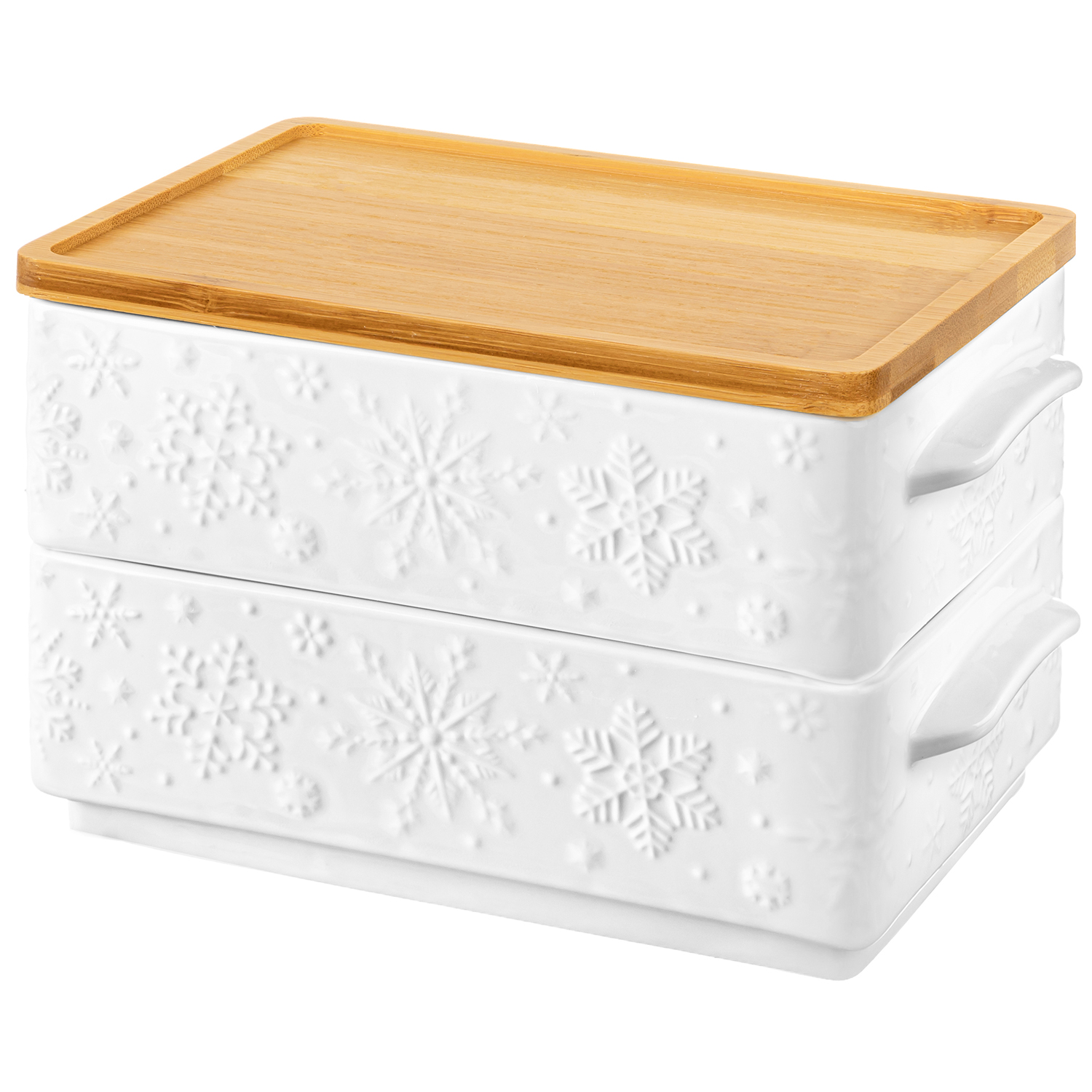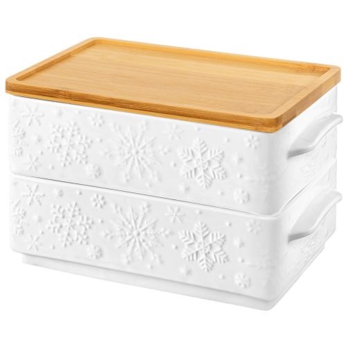 БЫЛО 1985 руб! Набор 2 блюд д/холодца 1,6 л 20,5*12*12 см "Снежинки" с бамбуковой крышкой, фарфор