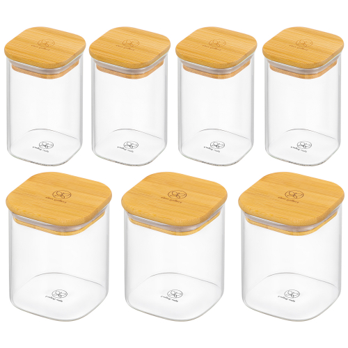 БЫЛО 2172руб! Набор 7 банок д/хранения 3 пр. 450 мл + 4 пр. 250 мл "Crystal glass" + бамб.крышка с силик.прок.