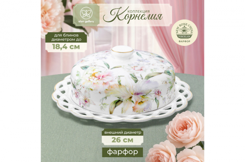 БЫЛО 2325 руб! Блинница 26*26*11,5 см "Корнелия" фарфор NEW BONE CHINA