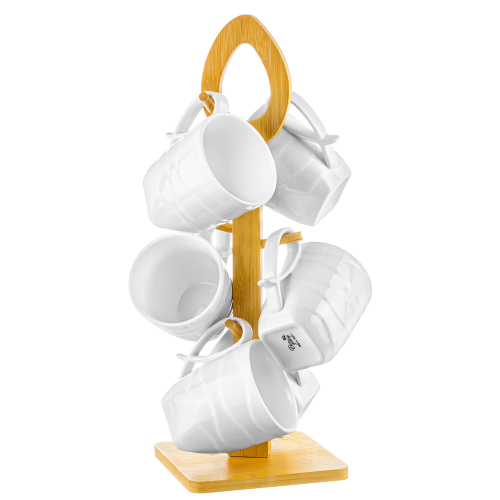 БЫЛО 2937 руб! Набор кружек 6 предметов 300 мл 16*18*38 см "Айсберг волны" на дерев. подставке с ручкой
