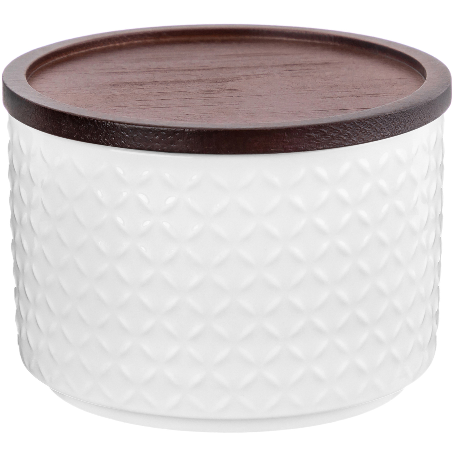 БЫЛО 319 руб! Банка д/хранения и запекания 250 мл 9,3*9,3*7 см "Орнамент" + дер. крыш.-подстав. с сил. упл., белая