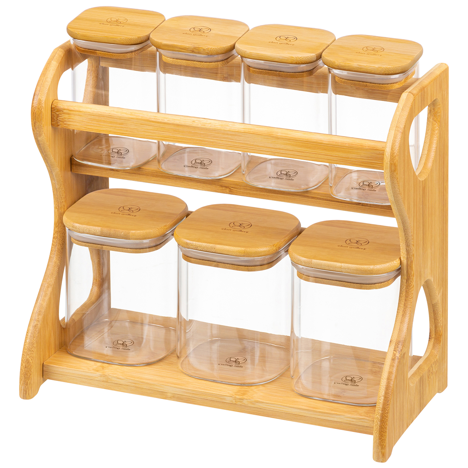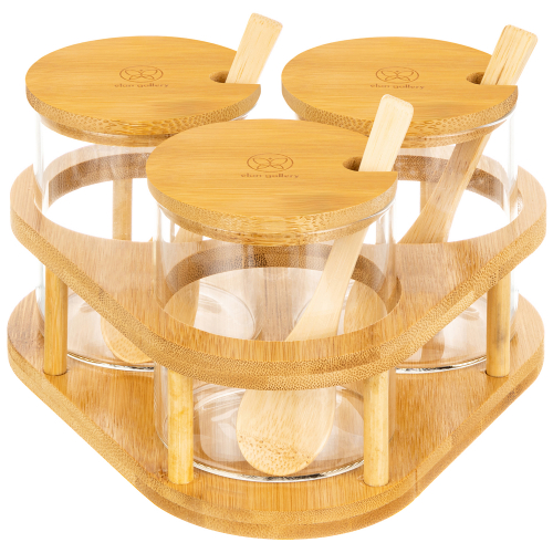 БЫЛО 3393 руб! Набор 7 банок д/хранения 28*13,5*28 см "Crystal glass" + бамб.крышка с сил.прокл.+бамб.подст