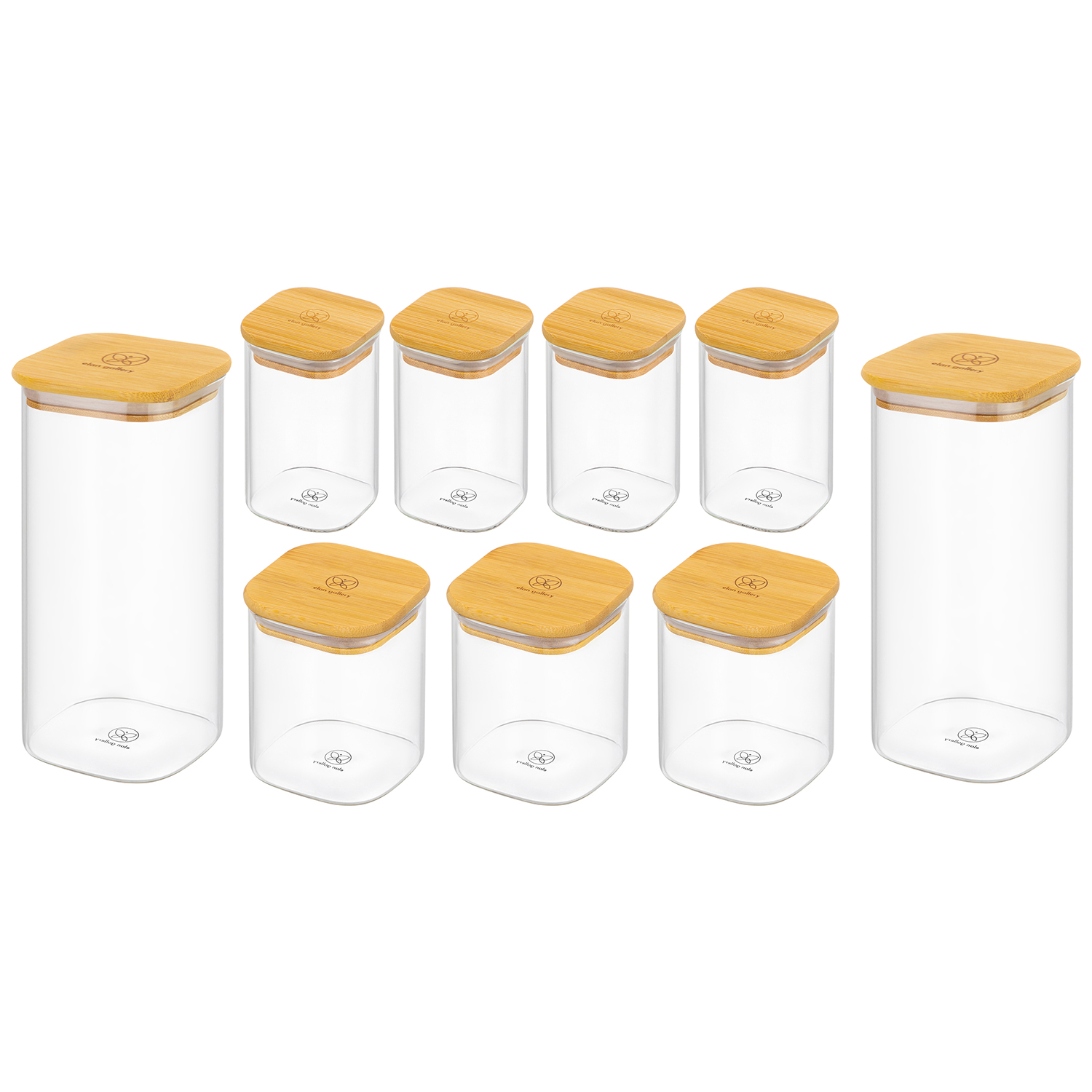 БЫЛО 3553 руб! Набор 9 банок д/хранения 3 пр. 450 мл+4 пр. 250 мл+2 пр. 1,6 л "Crystal glass"+ бамб.крыш. с сил.упл