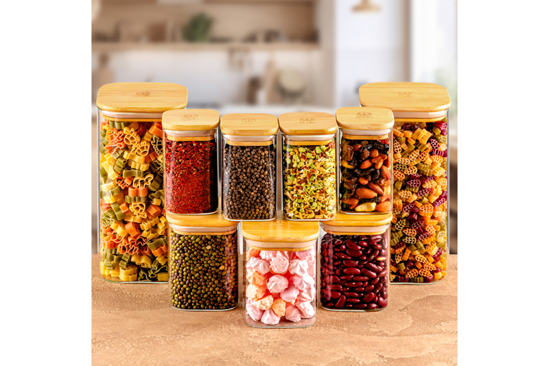 БЫЛО 3553 руб!! Набор банок д/хранения 9 пр. 450 мл+ 250 мл+ 1,6 л "Crystal glass"+ бамб.крыш. с сил.упл