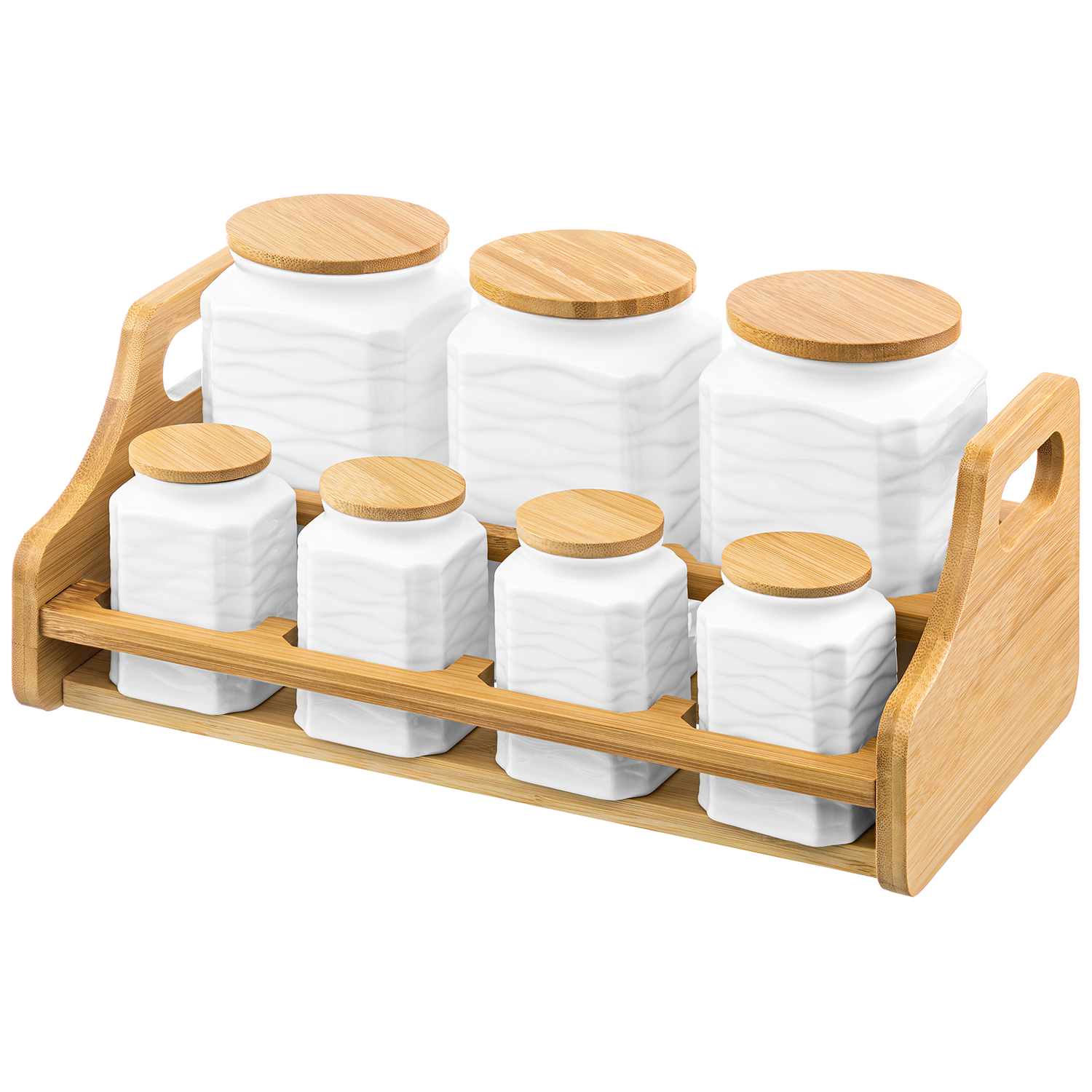 БЫЛО 3855 руб! Набор 7 банок д/хранения 31,7*17,7*15,5 см "Айсберг волны" + бамб.крышка.+бамб.подст