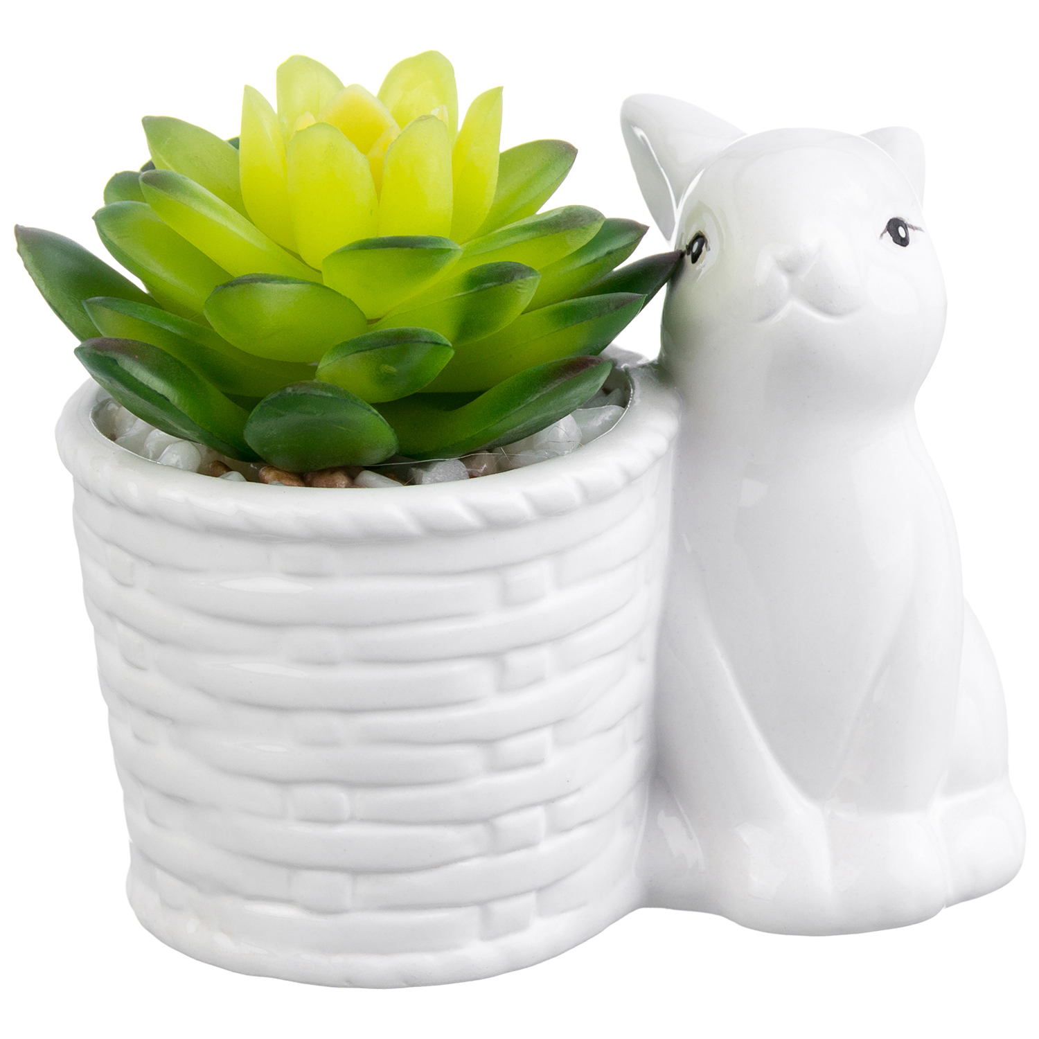 БЫЛО 389 руб! Кашпо-фигурка 11*7,5*10 см "Зайчик с цветком"