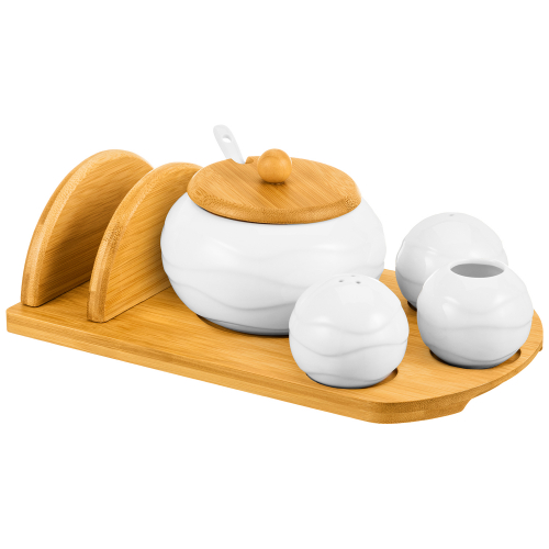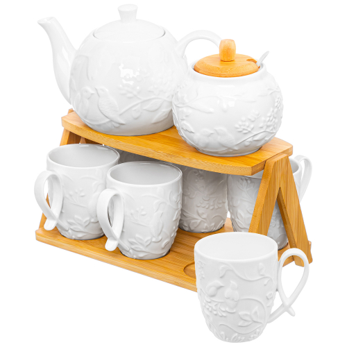 БЫЛО 4138 руб! Набор - чайник 900 мл + сахарница + кружки 6 пр. "Птички на ветке" на бамбуковой подставке
