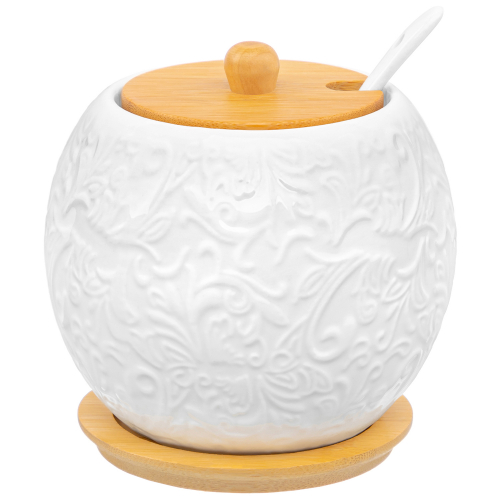 БЫЛО 458 руб! Сахарница 450 мл 10,5*10,5*10,5 см "Шелк" + ложка + дер. крышка