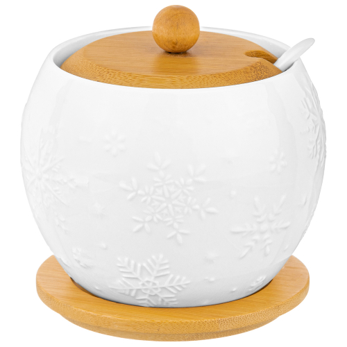 БЫЛО 461 руб! Сахарница 270 мл 9*9*10 см "Снежинки" с ложкой, фарфор