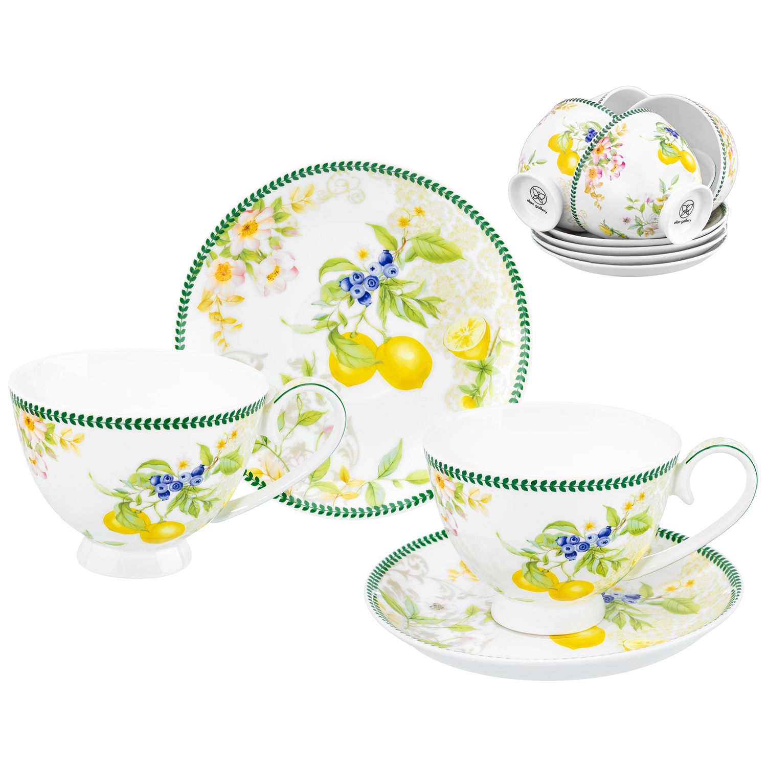 БЫЛО 5310 руб! Чайный набор 12 пр. 300 мл 12,5*9,5*7 см "Лимоны" на ножке, NEW BONE CHINA