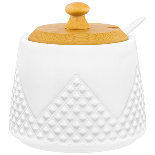 БЫЛО 546 руб! Сахарница 350 мл 9,7*9,7*10,5 см "Ромбики" с ложкой и дер. крышкой, фарфор