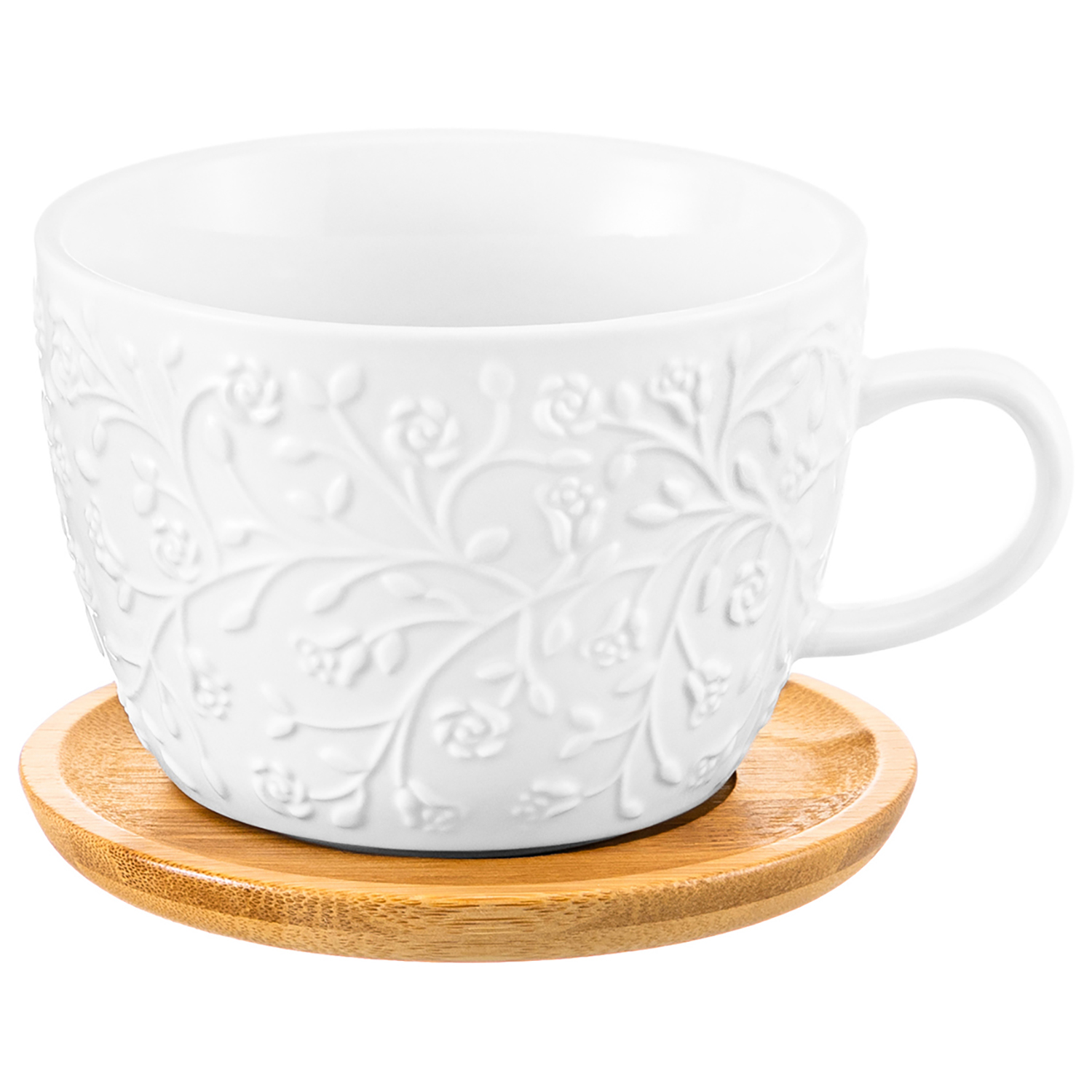 БЫЛО 555 руб! Чашка для капучино и кофе латте 500 мл 15*12,8*8,5 см "Веточки-цветочки"+ дерев. подставка