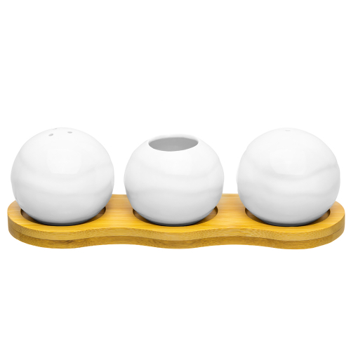 БЫЛО 563 руб! Вазочка под зубочистки + набор для специй 2 пр. 19,5*7*6 см 75 мл "Сфера" на деревянной подставке