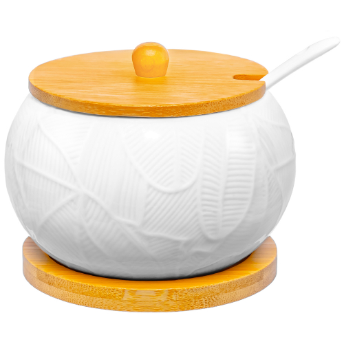 БЫЛО 572 руб! Сахарница 320 мл 10,5*10,5*9 см "Танзания" + ложка + дер. крышка на дер. подставке