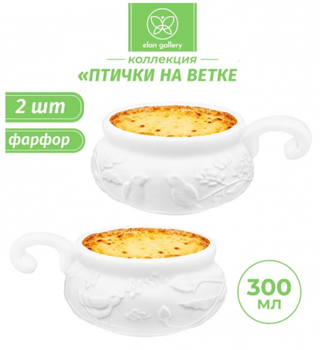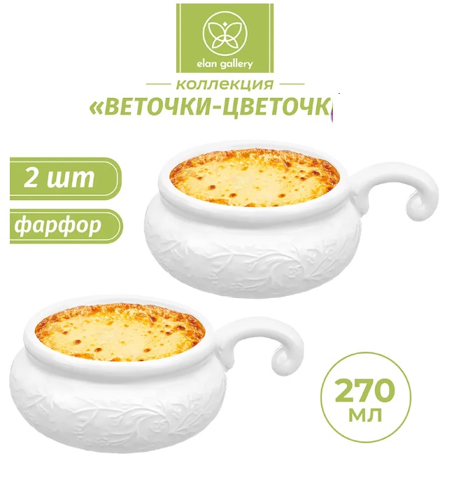 БЫЛО 583 руб! Набор 2 жюльенниц - кокотниц 270 мл 14*10,5*5,5 см "Веточки-цветочки"