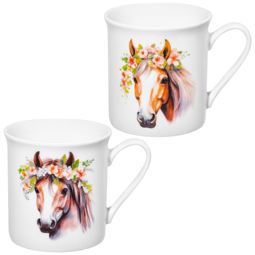 БЫЛО 590руб! Набор кружек 2 пр. 310 мл 11,5*8,5*9 см "Лошадь с цветочным венком", фарфор
