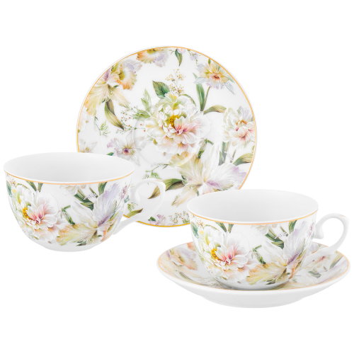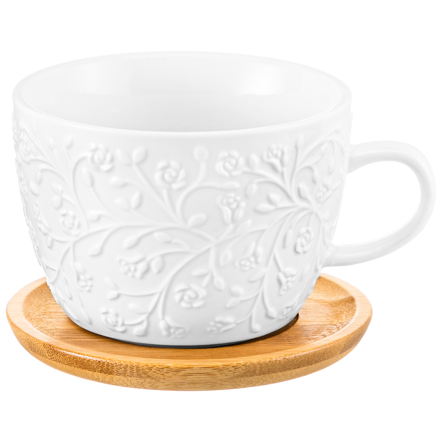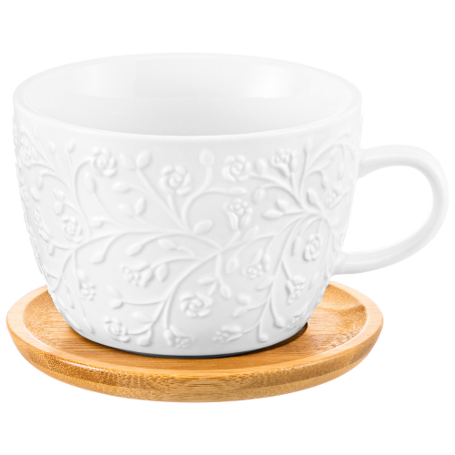 БЫЛО 597 руб!! Чашка для капучино и кофе латте 500 мл 15*12,8*8,5 см "Веточки-цветочки"+ дерев. подставка