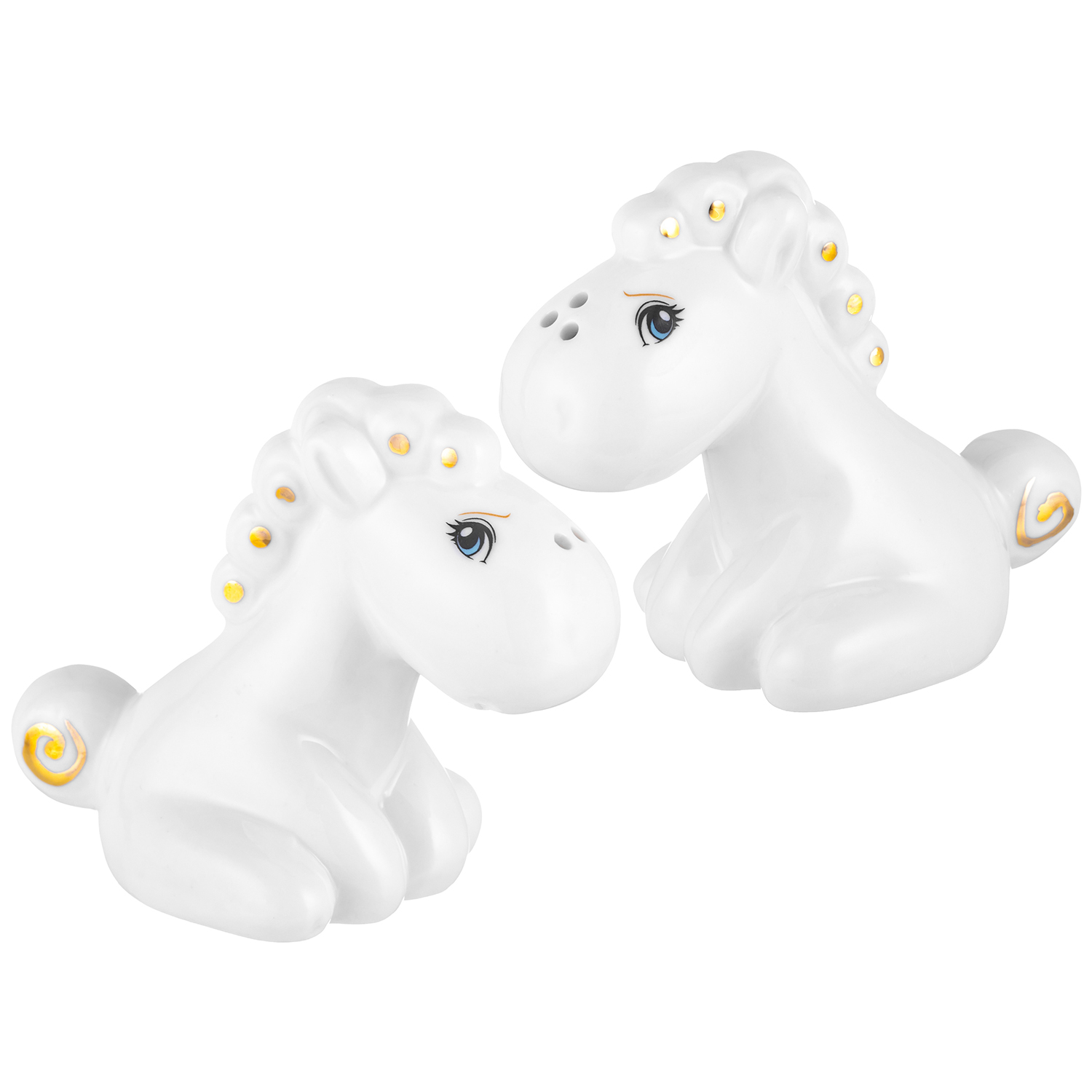 БЫЛО 608 руб! Набор для специй 2 предмета 8,5х5х7,5 см "Лошадки" белая с золотом, фарфор