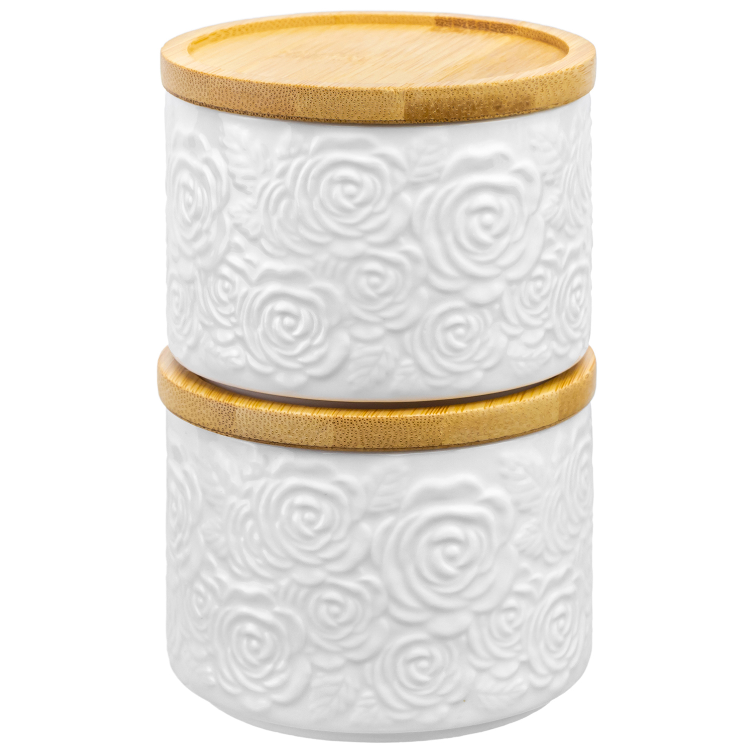 БЫЛО 609 руб!! Набор банок д/хранения и запекания 2 пр. 250 мл 9,3*9,3*7 см "Розы" c дер. крышкой-подстав.