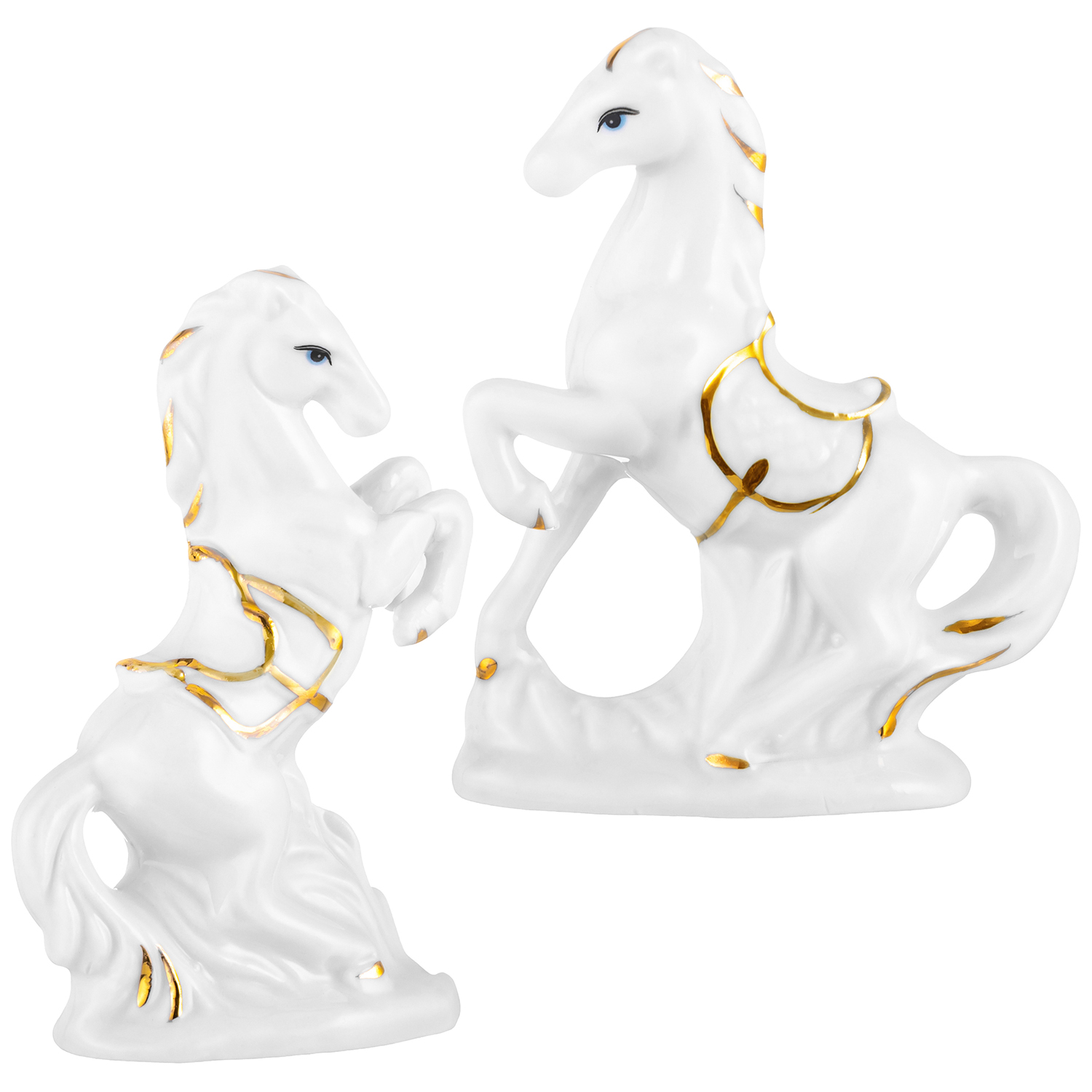 БЫЛО 628руб! Набор фигурки декоративные 2 пр. 5,5*3*8,5 см, 6,5*2,5*8,5 см "Лошади" белая с золотом, фарфор