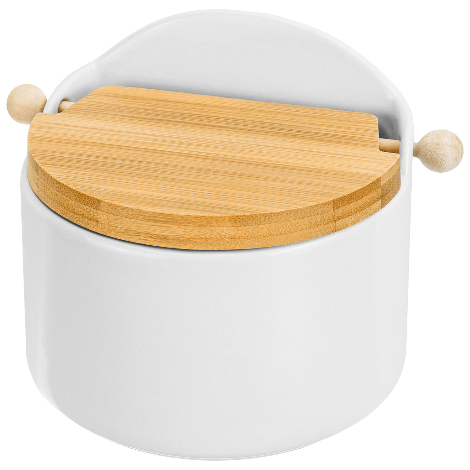 БЫЛО 633 руб! Банка для сыпучих продуктов 500 мл 15*10*11,1 см "Белая" + откидная бамбук.крышка, керамика