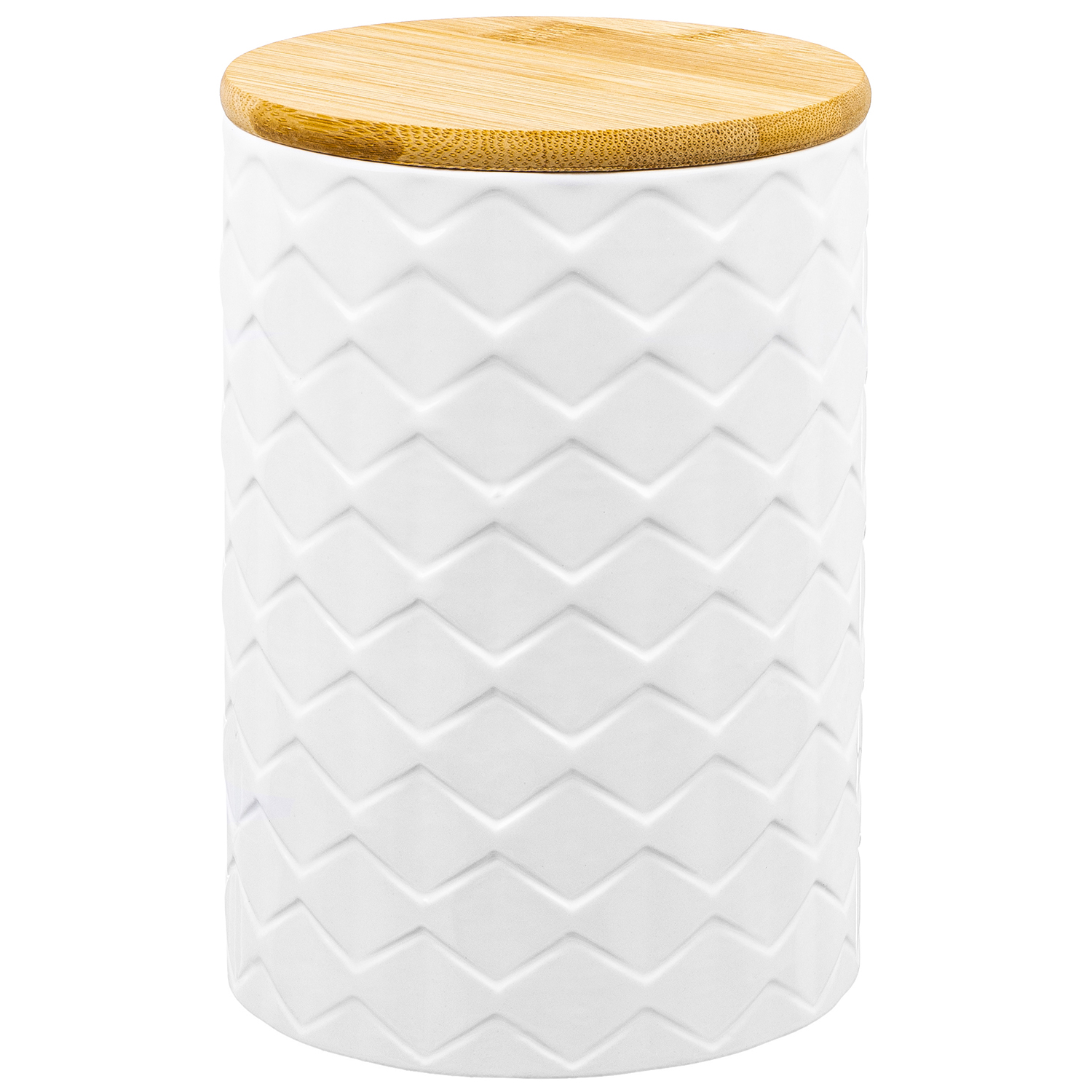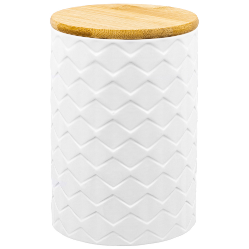 БЫЛО 651 руб! Банка д/хранения 1,1 л 11*11*16 см "Аргайл" + бамбук.крышка с силикон.упл, белый перламутр, керамика