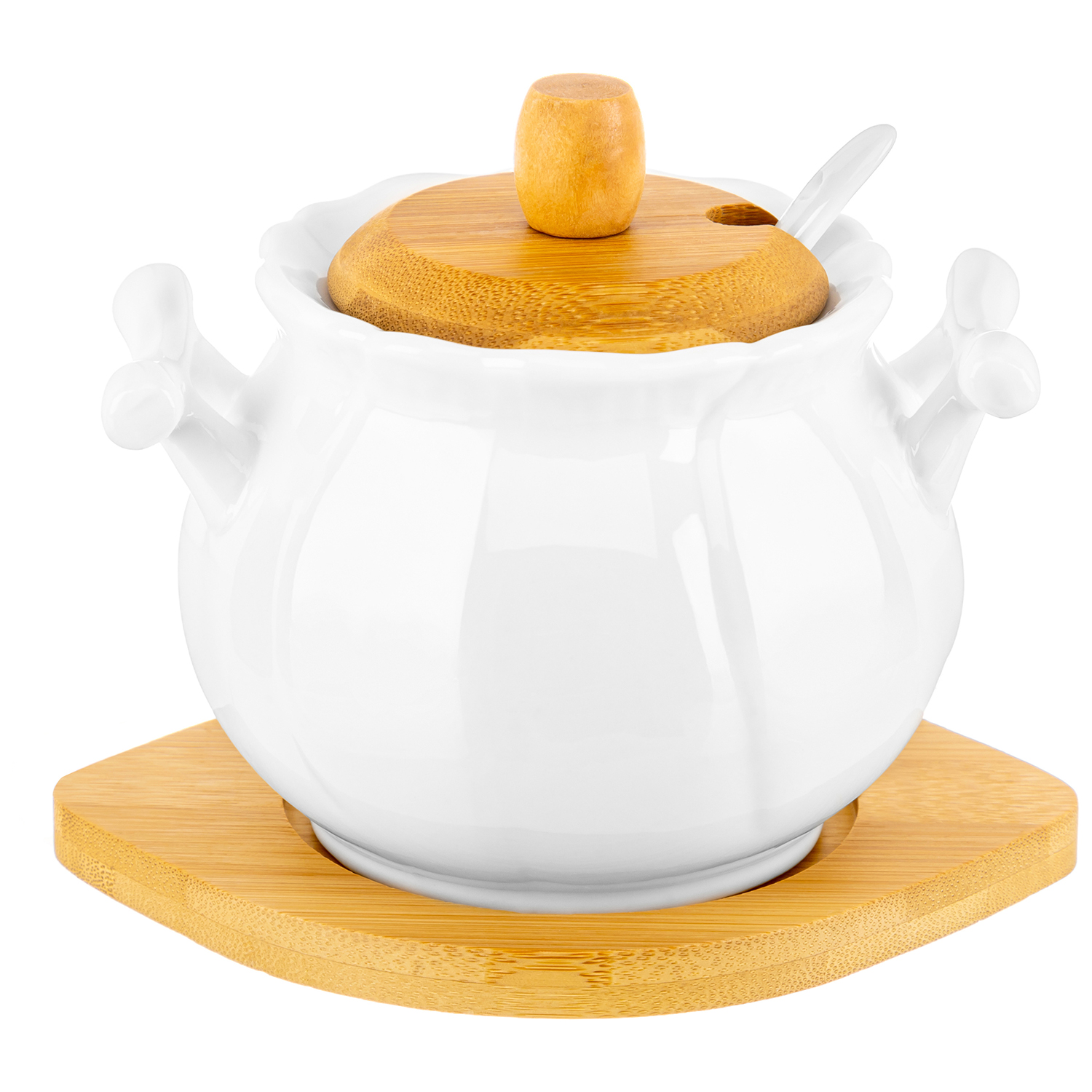 БЫЛО 659 руб! Сахарница 500 мл 15,5*11,5*12 см "Айсберг" с ложкой, дер. крышкой на дер. подставке
