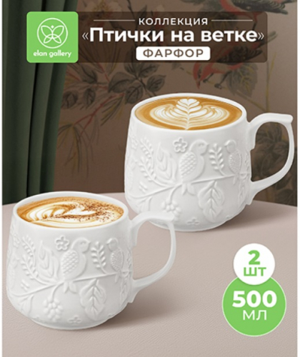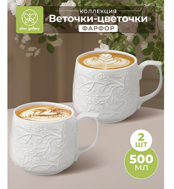 БЫЛО 662 руб! Набор 2 кружек 500 мл 13,5*10*9 см "Веточки-цветочки", фарфор