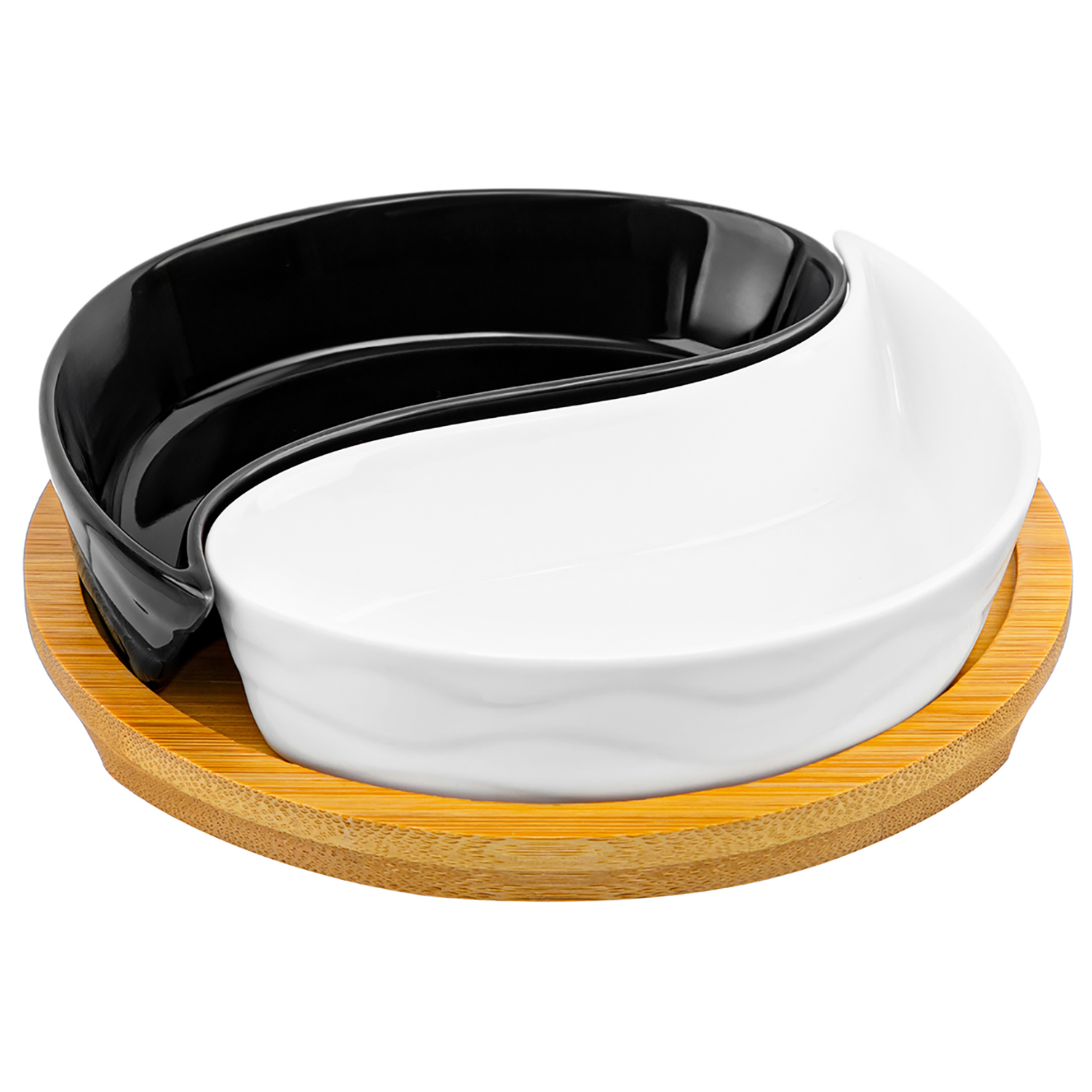 БЫЛО 664 руб!! Тарелка под оливки 100 мл 15х15х3,5 см Elan Gallery "Инь-Янь Айсберг волны" на деревянной подставке